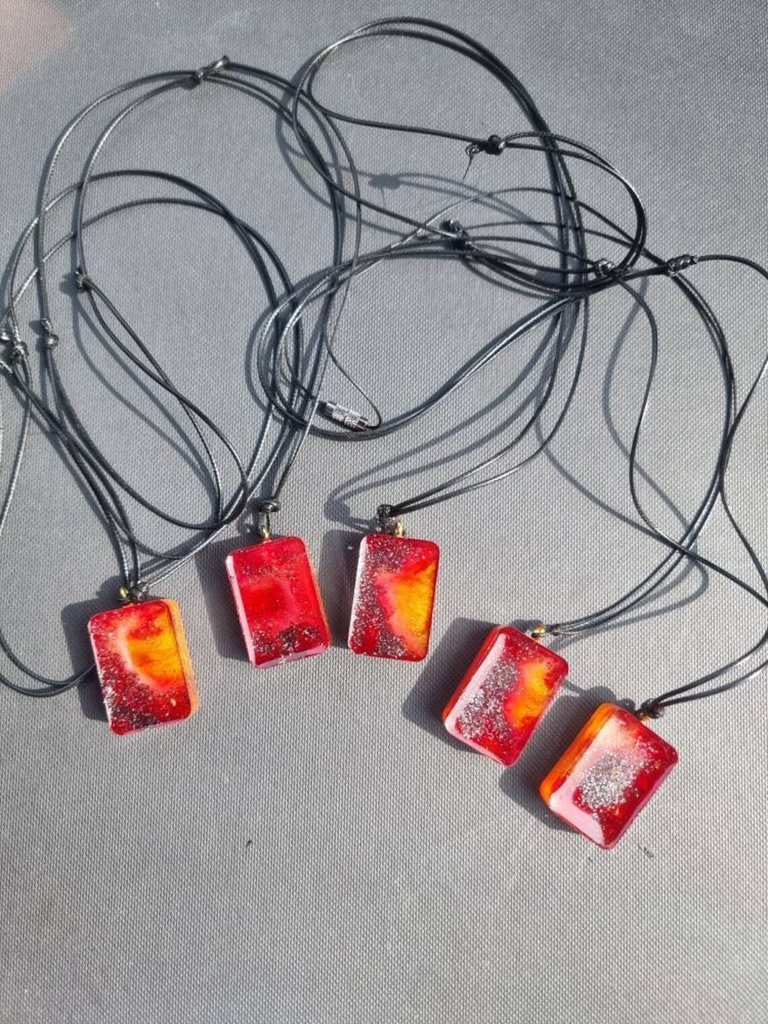 Die liebevoll handgearbeiteten Runenzeichen sind 3,5 cm groß und aus lösemittelfreiem Harz gegossen. Sie sind in Metallic-Farben und mit Glitzerteilchen gestaltet. Das Band ist in der Länge verstellbar.