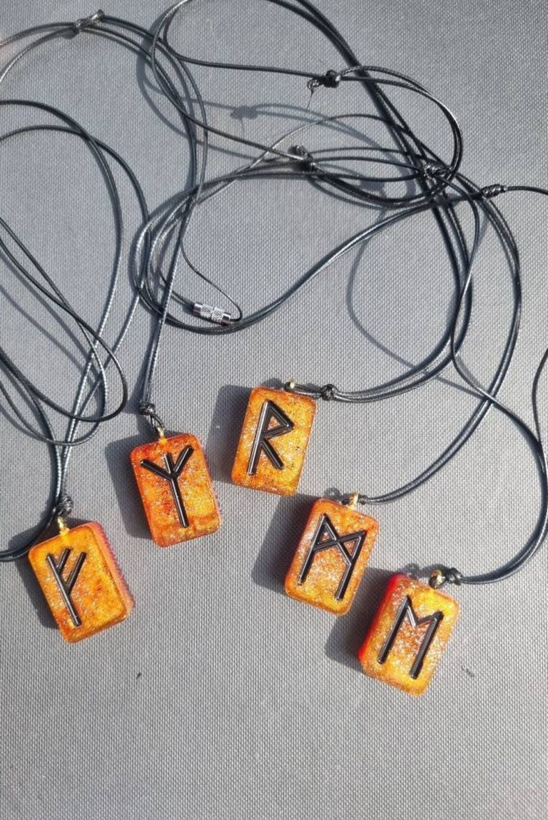 Materialien: Resin Harz, Runen, Fehu Rune, Mannaz Rune, Algiz Rune, Radio Rune, Ehwaz Rune