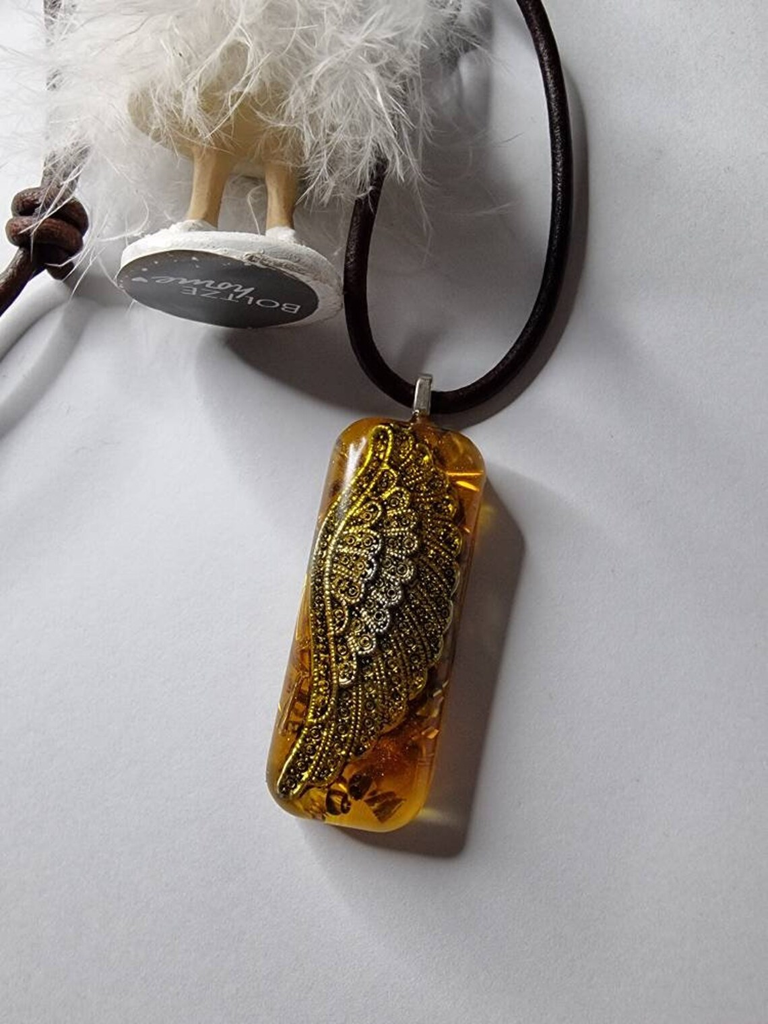 Materialien: Harz, Metall Engelsflügel, Messing, Bergkristall, Resin Harz, Amethyst, Weihrauch, Lavendel blüten, Zedernholz, Bronze, Lederband