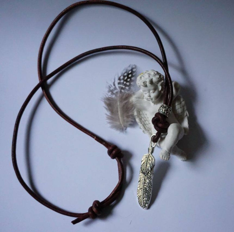 Ketten mit Feder Boho, Herzgroßlochperle und Heilsteinen
